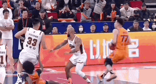 第四节比赛开始后,李弘权一上来就投了一个三分,继续扩大分差。紧接着弗格和大王的挡拆配合,更是打得对方毫无还手之力,76-68!